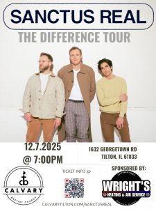 We are thrilled to announce that Sanctus Real will be in concert at Calvary Baptist Church as part of The Difference Tour! This will be a powerful night of worship, encouragement, and music you won’t want to miss.